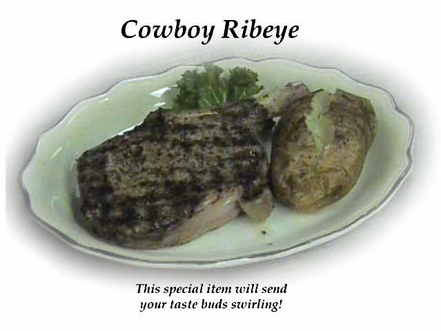 The Cowboy Ribeye is one of our most sold specials and deserves to fill your screen with it's tempting appearance.